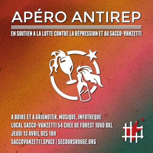 A partir de ce mois d’avril, le Sacco-Vanzetti et le Secours Rouge vous invitent à un Apéro Antirep’, en soutien à la lutte contre la répression et au local.