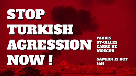 Rendez-vous ce samedi 12 octobre à 14h au Parvis de Saint-Gilles (Carré de Moscou) contre l’agression de l’Etat turc contre le Nord de la Syrie (Rojava) qui a commencé ce 9 octobre.