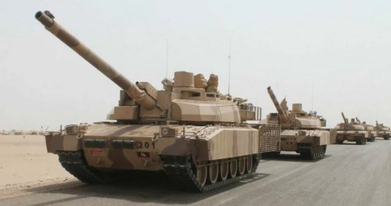 Des chars Leclerc fabriqués en France déployés près d’Aden (Yémen) le 3 août 2015, durant une opération militaire contre des rebelles chiites hutis et leurs alliés